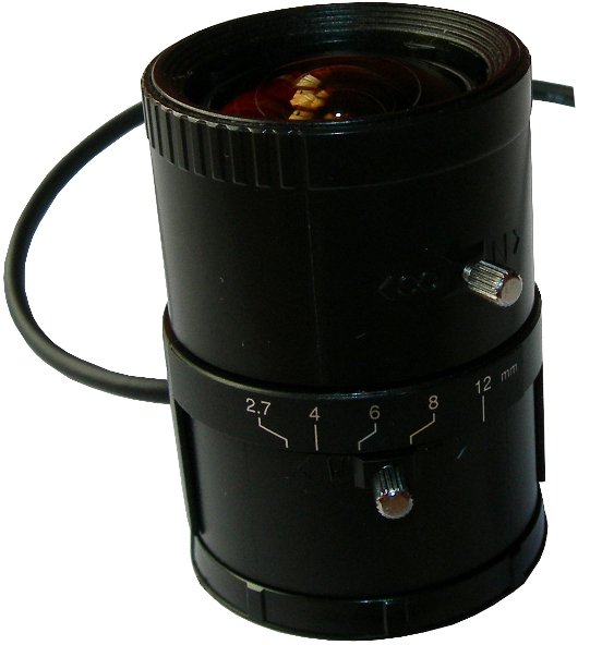 Wysokiej klasy obiektyw 1/3”, regulowany w zakresie 2.7-12 mm, super-jasny F1,2 do 360 , przysłona automatyczna (DC).